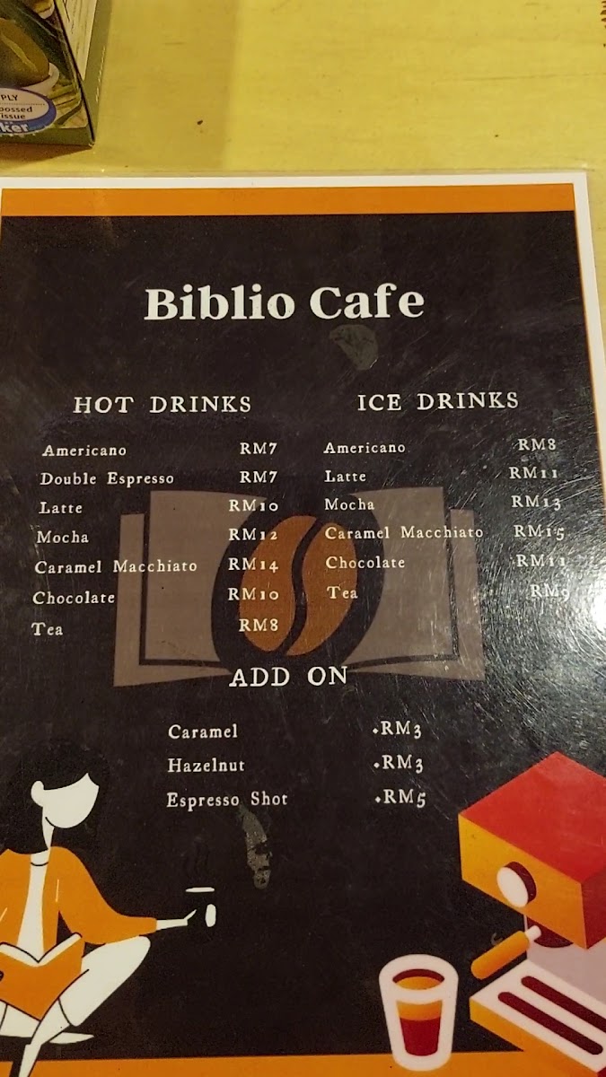 One of the highlights of The Biblio Bookcafe is, of course, its exceptional menu. Start your day with a rich and robust Espresso (MYR 7.00) to kickstart your creativity, or opt for a comforting Hot Latte (MYR 10.00) as you peruse through the shelves filled with both literary classics and lesser-known treasures. If you're in the mood for something sweet, the Hot Caramel Macchiato (MYR 14.00) is an inviting choice, perfectly balanced, and utterly delightful. And when the weather calls for refreshment, choose an Iced Latte (MYR 11.00) or an Iced Caramel Macchiato (MYR 15.00) that will surely recharge your spirits.